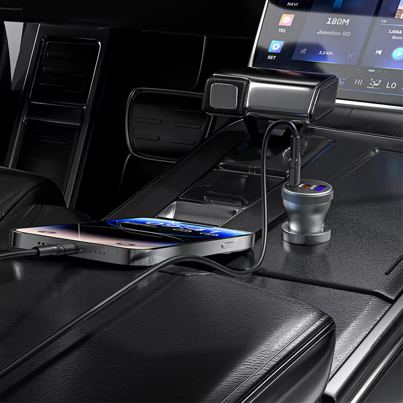 Araç şarj cihazı tüm USB-C ve USB veri kablolarıyla uyumludur ve akıllı telefonlar, MP4 oynatıcılar, kablosuz cihazlar, tabletler vb. için hızlı şarjı destekler.