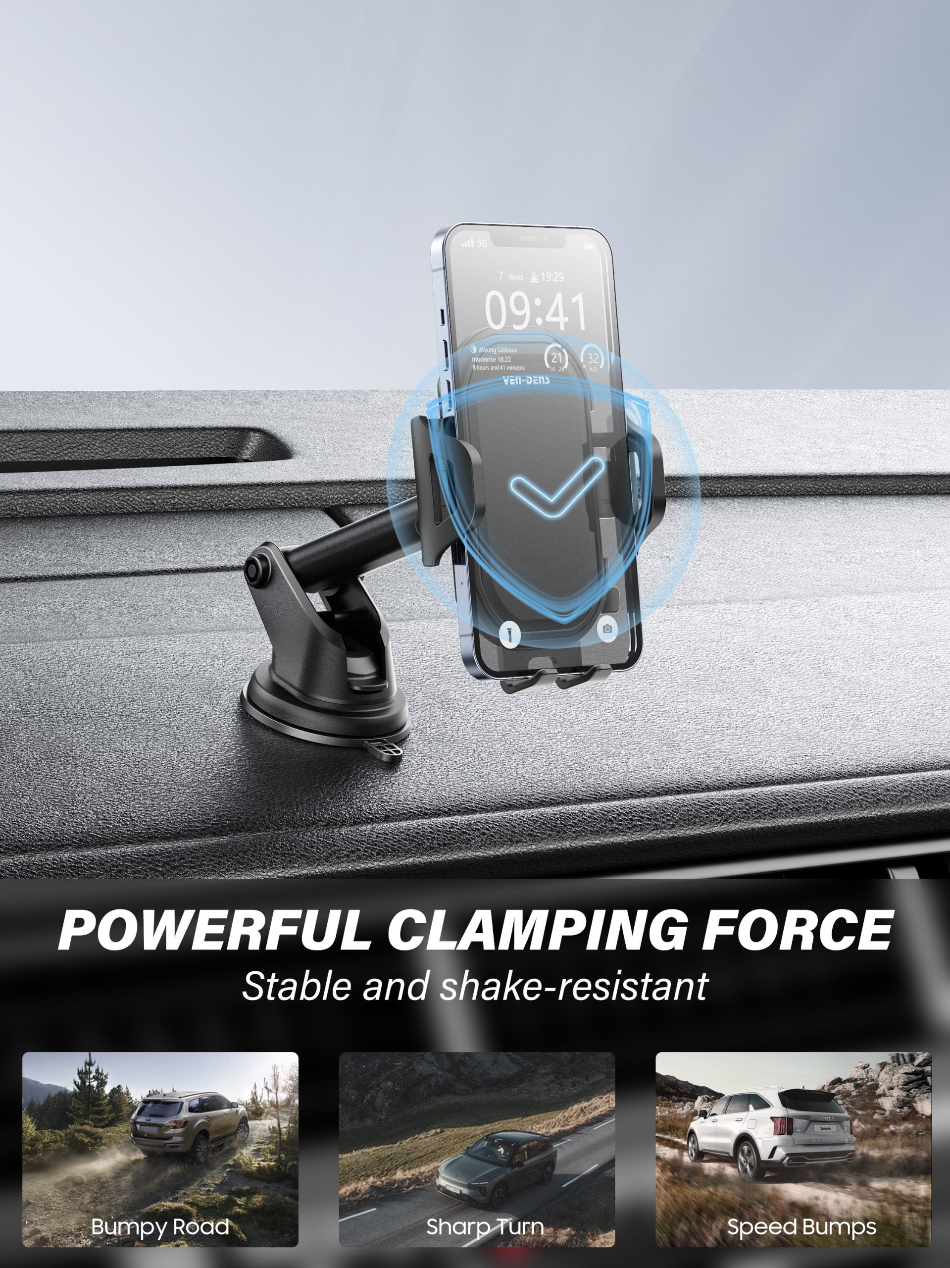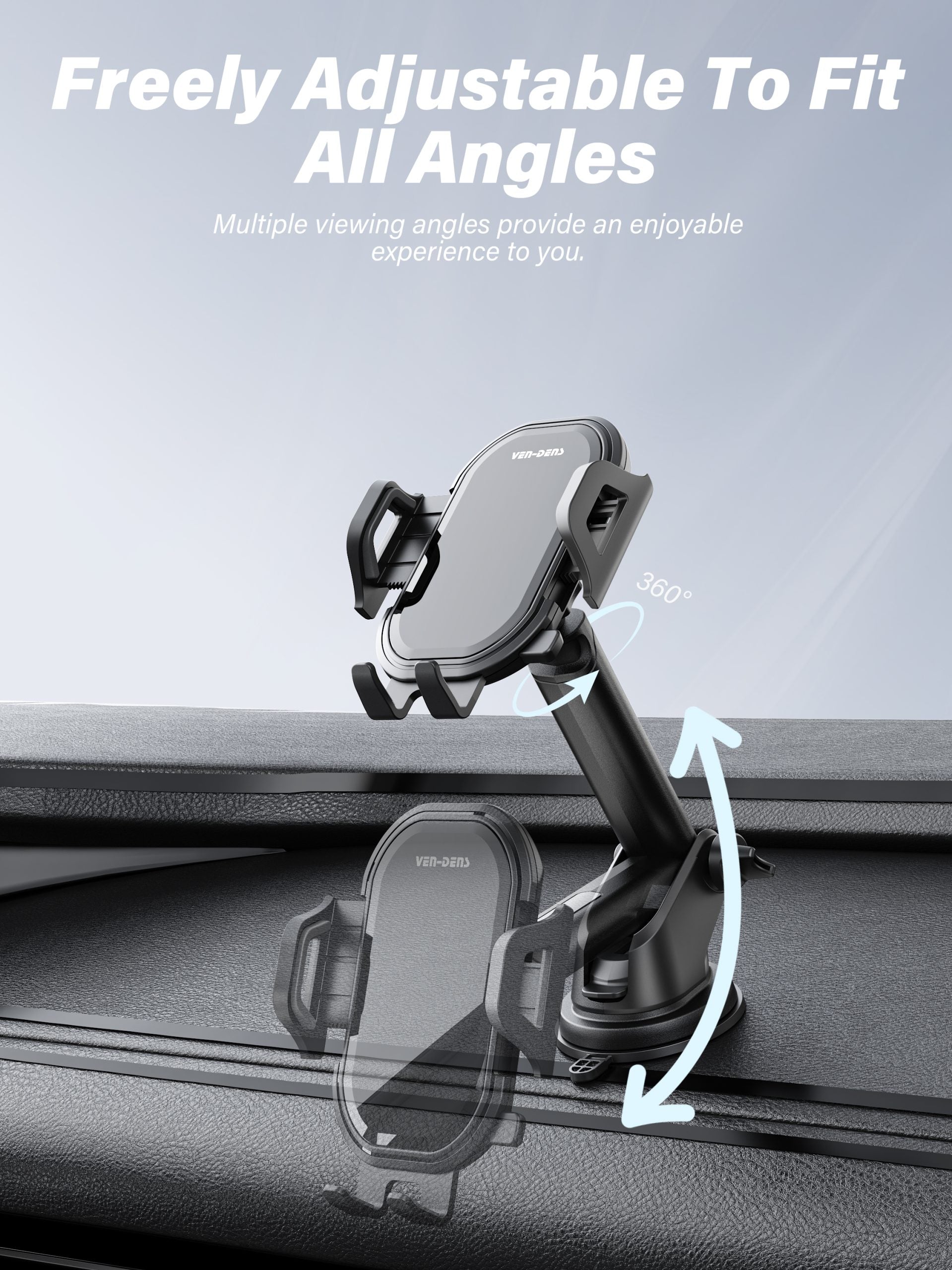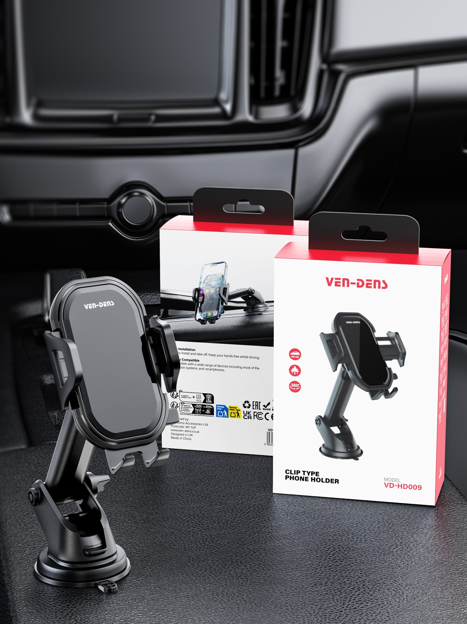 VD-HD009 Siyah Telefon Tutucu, Gösterge Paneli veya Ön Cam İçin, Klipsli, Güçlü, Titreşim Önleyici, Katlanabilir, Telefonlar İçin Uygun