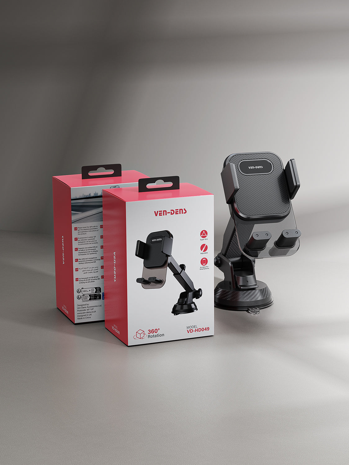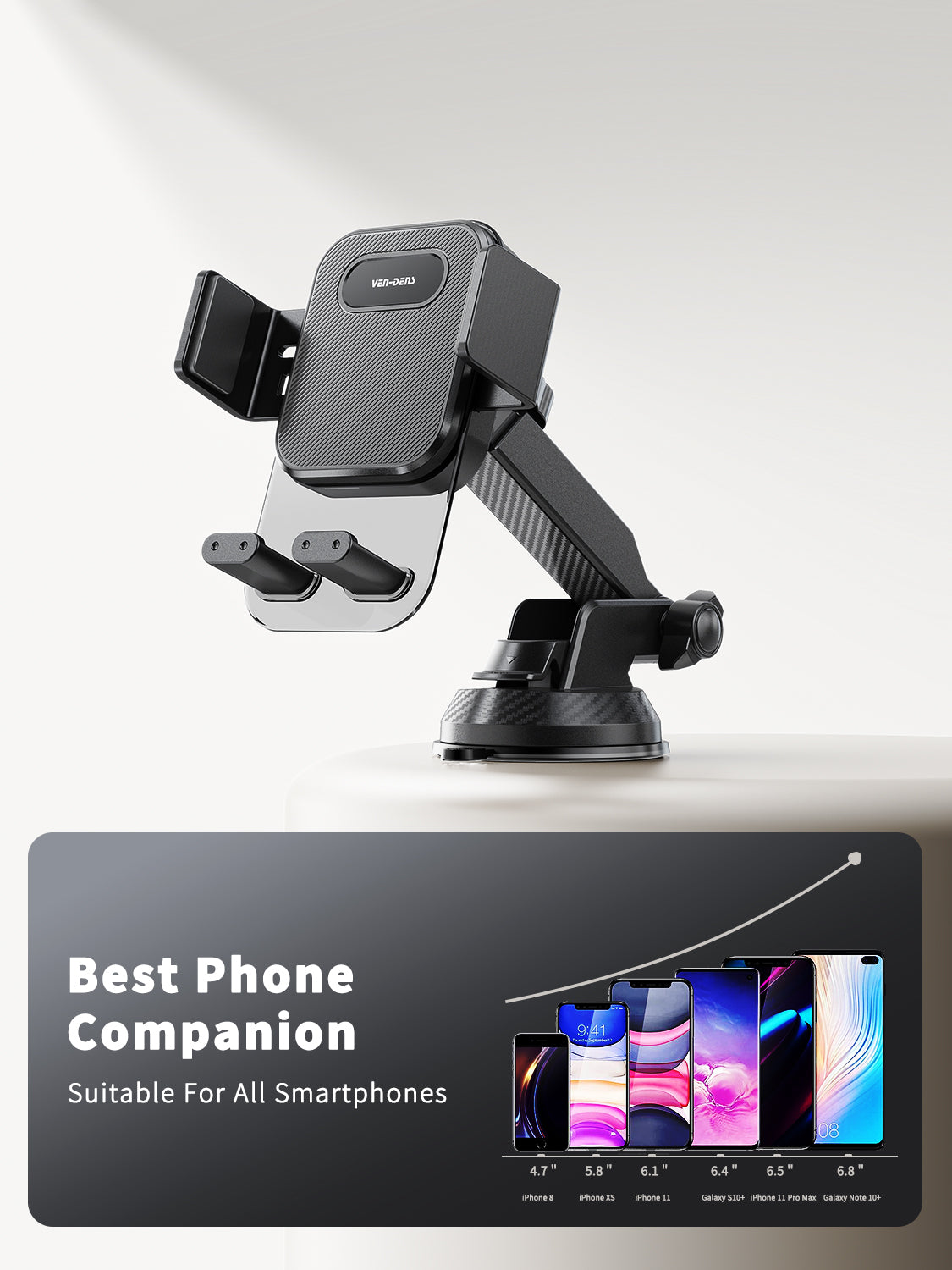 VD-HD049 Yüksek kaliteli, geri çekilebilir, katlanabilir, 360 derece dönebilen araç içi telefon tutucu, orta konsol için evrensel akıllı telefon tutucu.